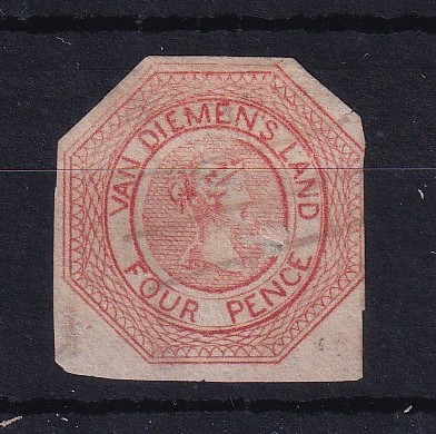 TAS 1853 1D BLUE YELLOWISH PAPER SG2 ON PIECE. 2½ MARGINS BUT STILL FINE AND RARE