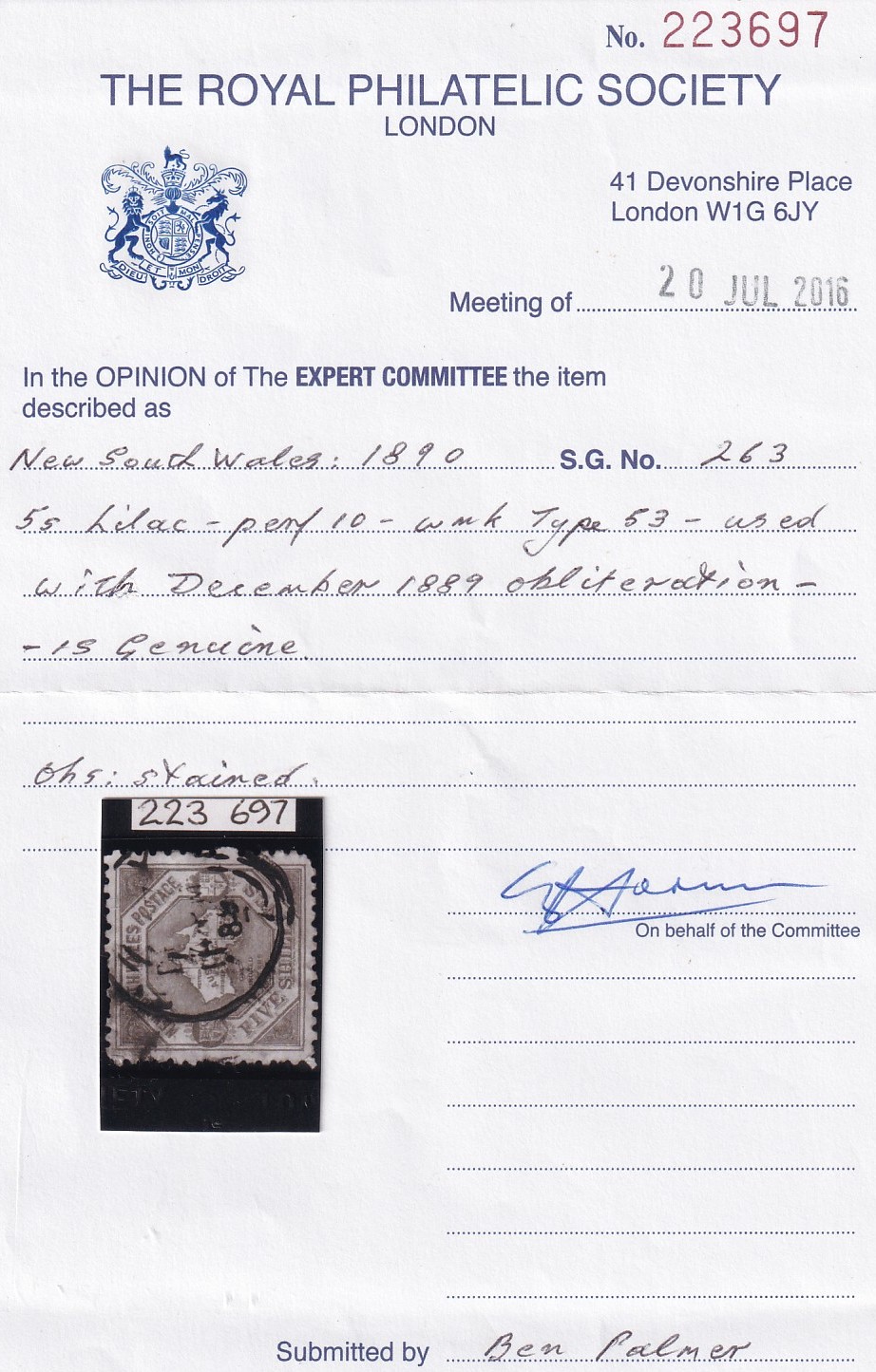 NSW 1890 5/- MAP USED BEFORE ISSUE DATE (DEC 89). WITH RPSL 2016 CERTIFICATE. RARE AND FINE